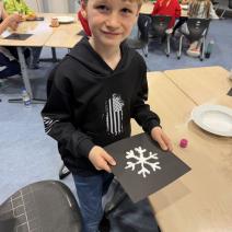 Im Anschluss kehrte etwas Ruhe ein, als die Schülerinnen und Schüler winterliche Bastelaktionen durchführten. Mit viel Eifer entstanden Schneesterne sowie kunstvolle Eiskristalle aus Kleber und Salz.
