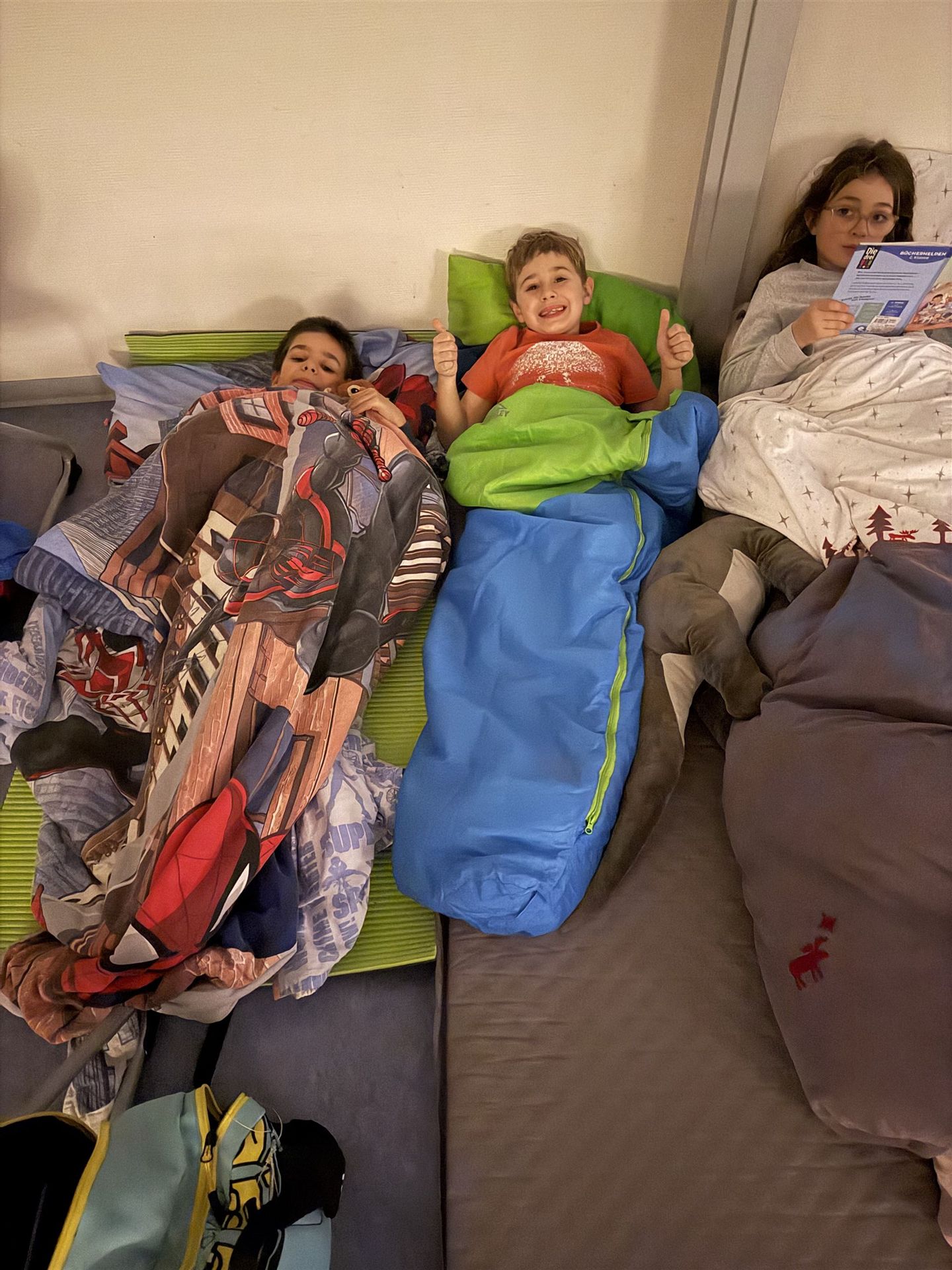Gegen 22.30 Uhr war schließlich Schlafenszeit: Müde, aber glücklich krochen die Kinder in ihre Schlafsäcke. Für die Klasse 2b war die Teilnahme an der Radionacht ein besonderes Erlebnis, das sicher noch lange in Erinnerung bleiben wird.