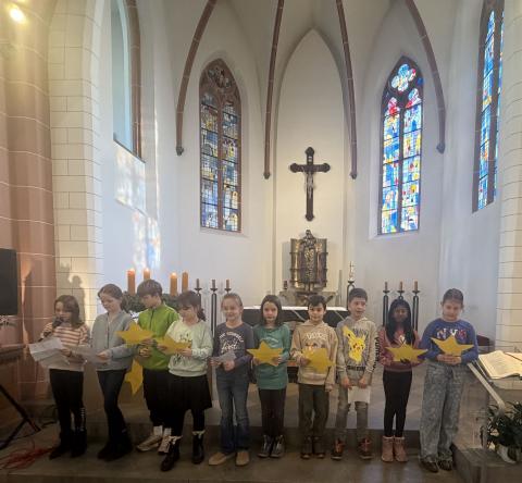 Am 16. Dezember feierte die Grundschule Dernbach ihren traditionellen Weihnachtsgottesdienst unter dem Motto „Ein Stern am Himmelszelt“ in der Klosterkirche Dernbach. Unter der Leitung von Silke Drewing kamen Schülerinnen und Schüler, Lehrkräfte sowie Begleitpersonen zusammen, um sich gemeinsam auf das Weihnachtsfest einzustimmen.